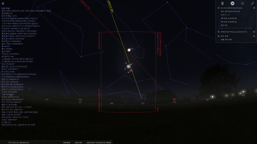 한달 동안 금성의 고도가 높아져서 행성의 위치가 바뀌어 있겠네요.