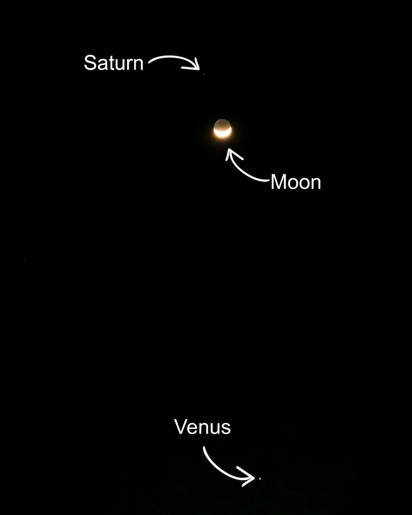 2월 1일 저녁에 금성-달-토성이 수직으로 정렬됩니다.