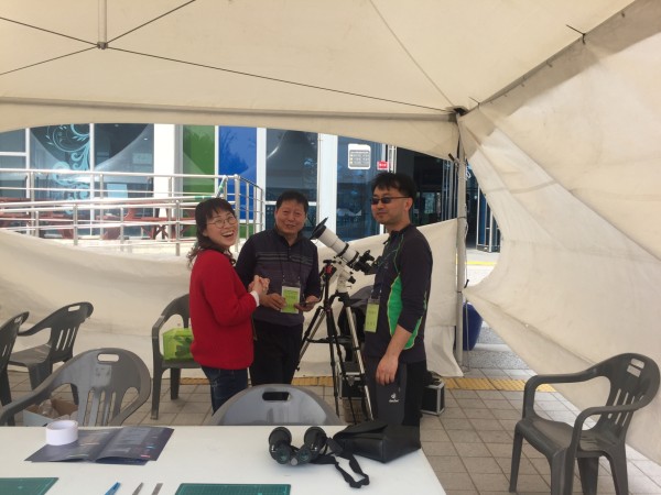 전국 각지에서 봉사를 위해 모인 각 지부별 회원들이 부스 운영과 망원경을 설치하여