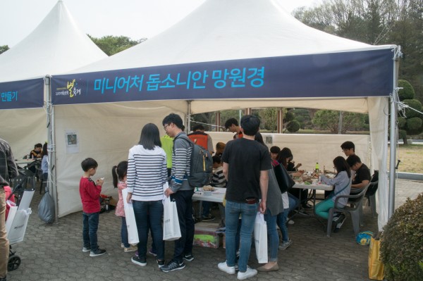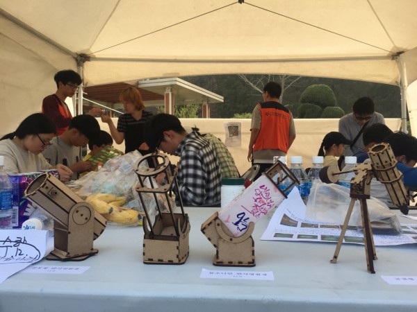 28인치 돕과 함께 가장 인기를 끌었던 미니 망원경 제작 부스입니다.
