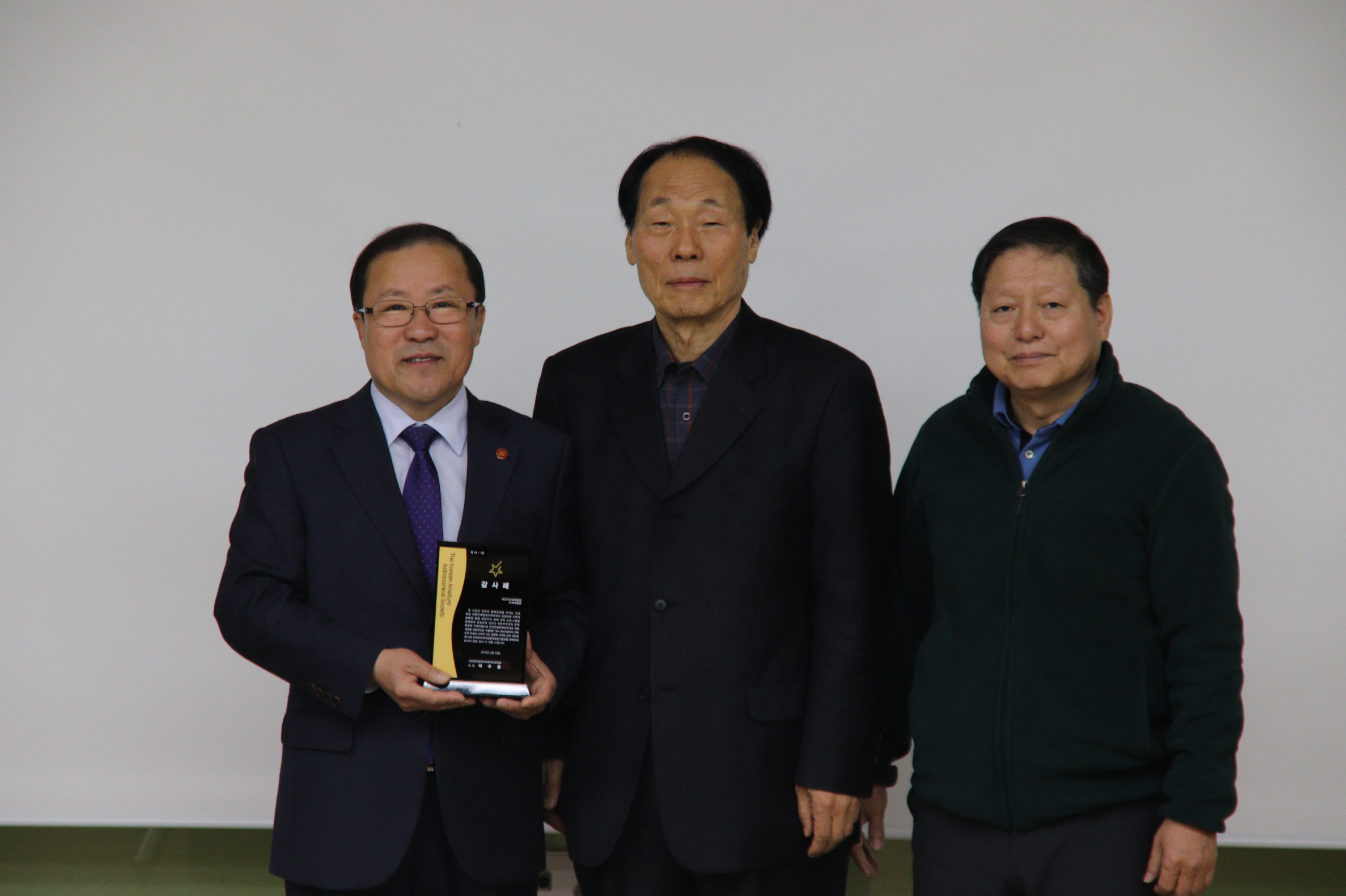 좌측 국민건강보험공단 인재개발원 박성하 부장님 가운데 이수웅 前 학회장님 우측 원치복 現 학회장님