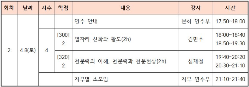2023년 천문지도사 3급 온라인 2회차 연수 안내 - 4월 8일