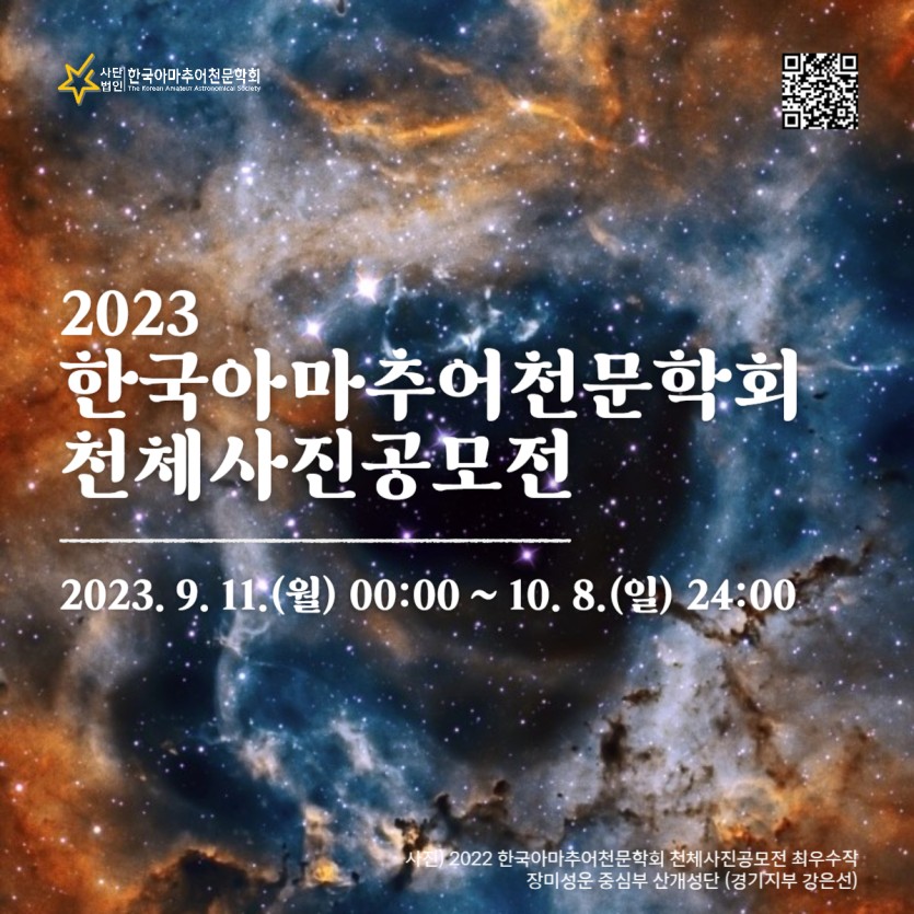 한국아마추어천문학회에서는 학회 회원을 대상으로 2023 천체사진 공모전을 아래와 같이 실시합니다.