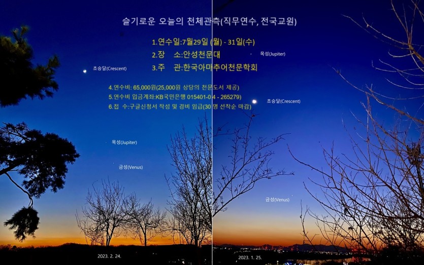 (사)한국아마추어천문학회에서는 전국 교원을 대상으로 한 특수분야 직무연수 프로그램인 '슬기로운 오늘의 천체관측'을 7월 29~31일 진행합니다.