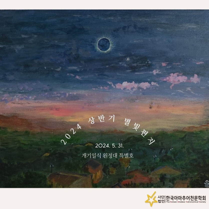 관리자 쪽지보내기 메일보내기 자기소개 아이디로 검색 전체게시물 작성일2024 상반기 별빛편지 공지 배경: <개기일식, 캔버스에 아크릴물감, 강예솔>