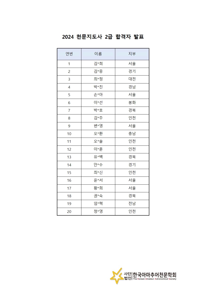 - 2024 천문지도사 2급 합격자 발표.pdf (74.9K) 25회 다운로드 | DATE : 2024-11-22 11:00:29