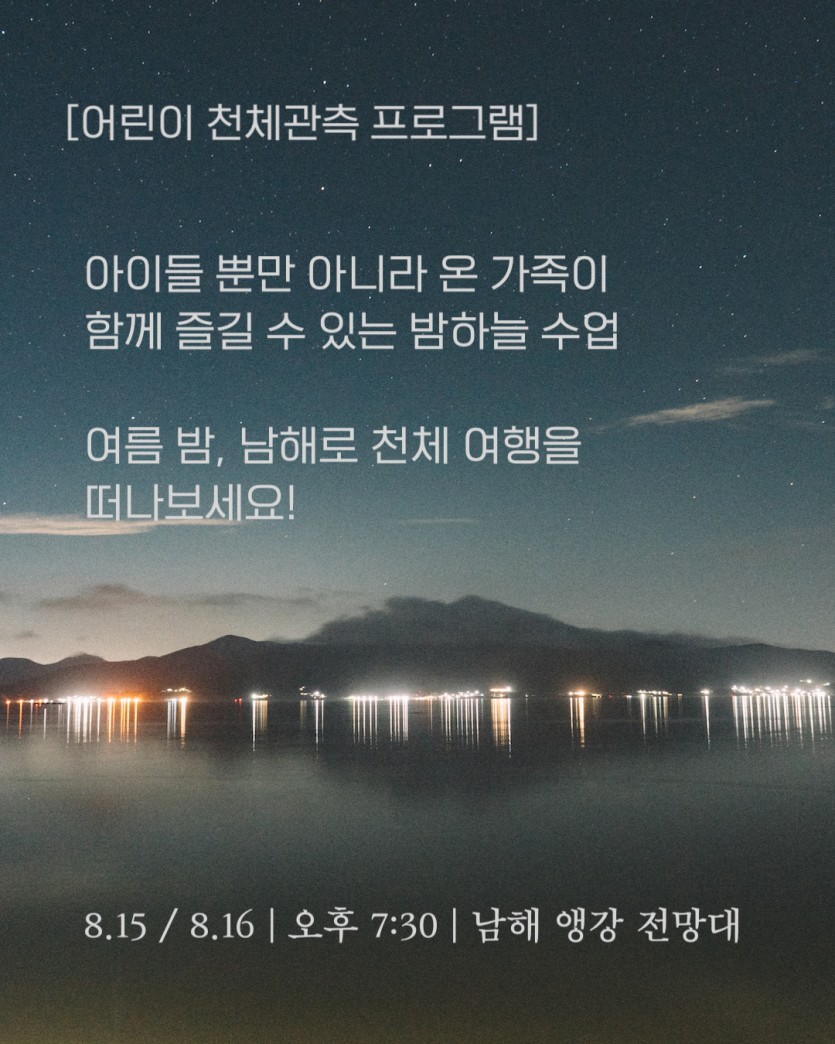 경남 남해에서 <어린이 천체관측 프로그램>이 열립니다.