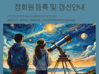 현재 진행중인 천체사진 공모전에 많은 분들이 참여하실 수 있게 홍보를 부탁드립니다.특별히 홍보를 위해 고생해주신 분들을 위해 작은 이벤트를 마련했습니다.천체사진공모전 공지글(https://www.kaas.or.kr/notice/2205)을 SNS에 공유해 주시고,해당 링크를 . . .
