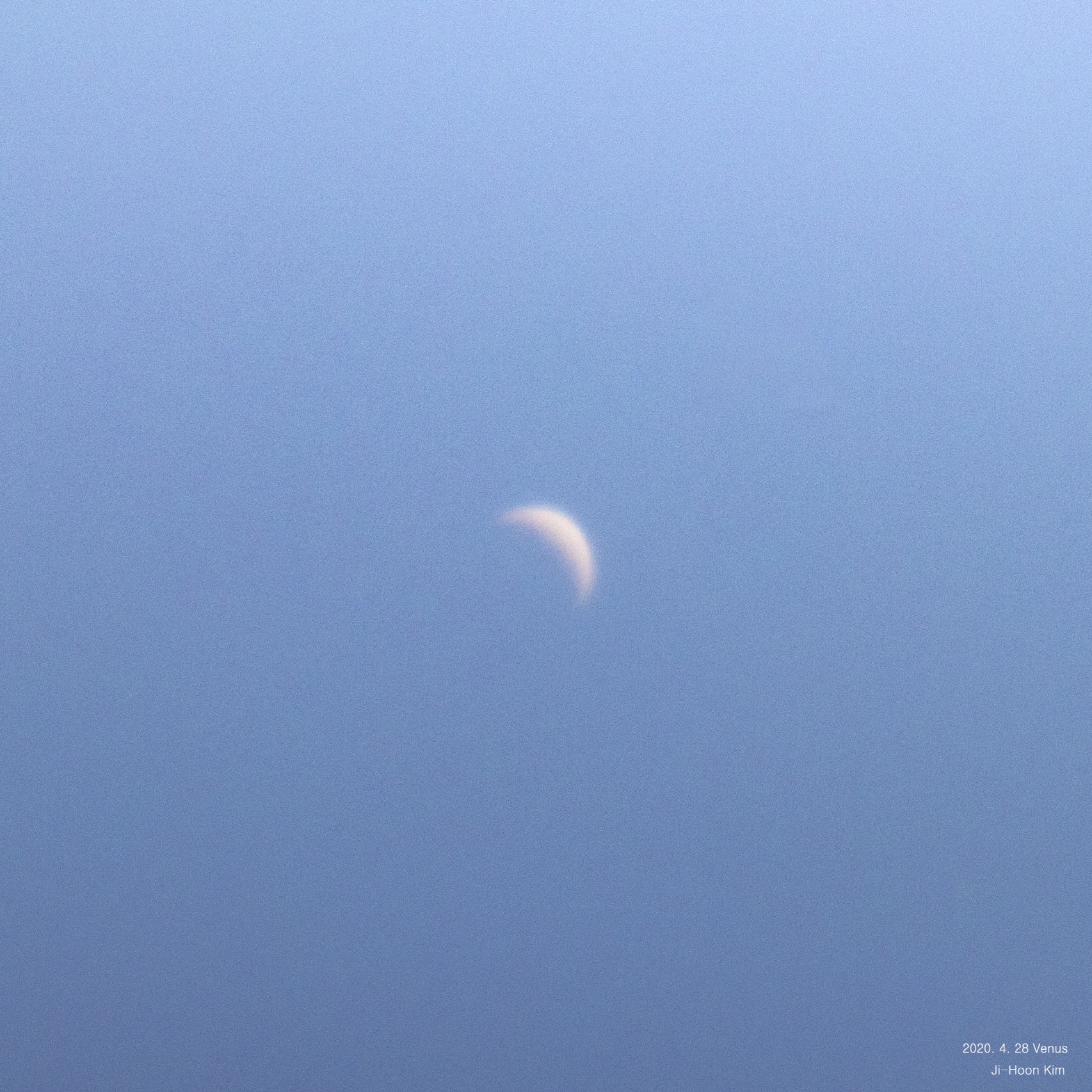2020. 4. 28 오전 10시경 금성의 최대밝기 페이지 정보 작성자 본회| 김지훈 쪽지보내기 메일보내기 홈페이지 자기소개 아이디로 검색 전체게시물 쪽지보내기 메일보내기 홈페이지 자기소개 아이디로 검색 전체게시물 댓글 0건 조회 9,348회 작성일 20-04-28 14:27 본문 한국천문연구원 달력에 보면 금일 오전 10시 -4.7등급으로 최대밝기라고 해서 촬영을 해봤는데....비교를 하지 않으면 잘 모르겠네요 ^^;;; 추천0 페이스북 공유 트위터 공유 구글+ 공유 목록 이전글 2020. 4. 28 태양의 홍염과 백반 그리고 흑점 다음글 2020년 4월 플레이아데스 성단 사이로 지나가는 금성 댓글목록 댓글목록 등록된 댓글이 없습니다.