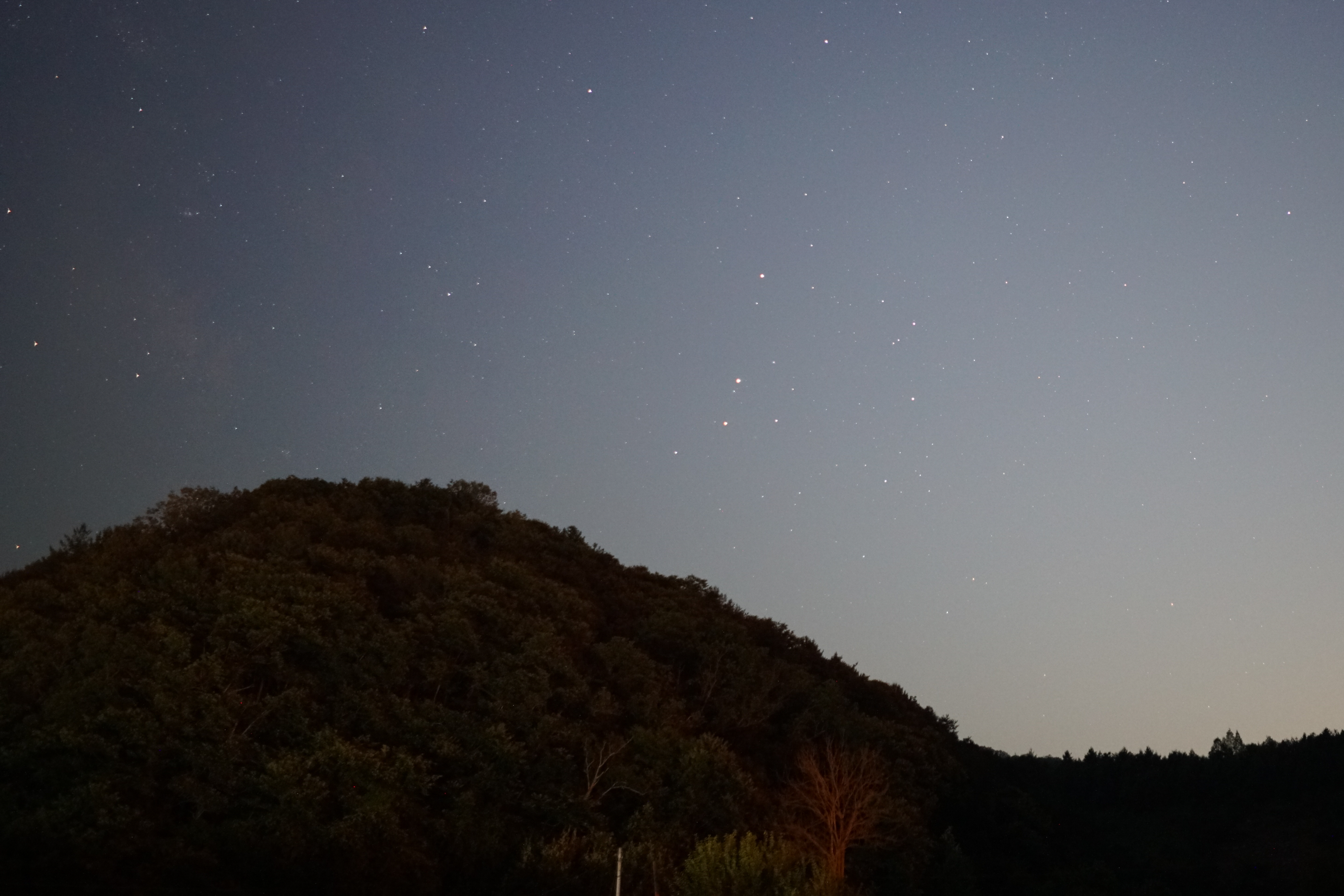 초저녁 해가 지고 난 뒤 남쪽 산등성위로 낮게 나타난 토성, 화성, 안타레스의 모습을 담아보았습니다. 어깨를 나란히 한 별 삼형제는 아니지만 한줄로 늘어선 삼형제도 보기 좋네요. 며칠간은 저 모습을 볼 수 있겠지요? 소나기 지나고 난 뒤의 여름 밤하늘이 오랫만에 시원했습니다.