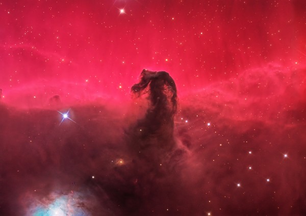 말모가지 성운 입니다. 오리온 자리에 있는 암흑성운이며, 붉은 빛을 내는 발광성운 IC434를 배경으로 말의 머리와 목부분의 디테일과 입체감을 살려서 머리 윗부분의 흰털과 말의 갈기를 자세히 표현해봅니다.