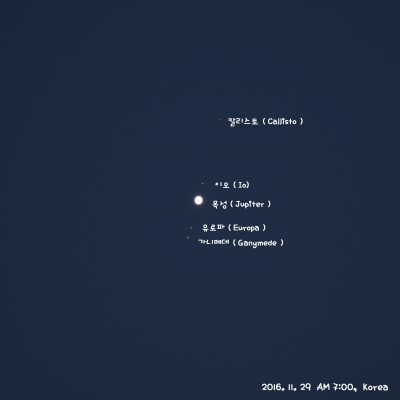 목성과 4대 위성 2016. 11. 29 AM 7:00